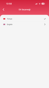 Uygulamayı İngilizce veya Türkçe kullanabilmek için dil değişikliği yapılabilir.