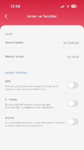 Kullanıcı izinlerini ve tercihlerini bu sayfa üzerinden değiştirebilir.