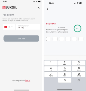 Telefon numarası girilerek, telefon numarasına gelen SMS’teki 6 haneli doğrulama kodunu girilerek uygulamaya giriş yapılır.