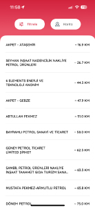 Yapılan akaryakıt alışveriş detayları burada görüntülenir, tarihe göre filtrelenebilir.