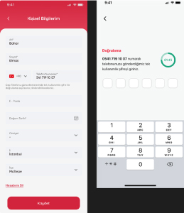 Zorunlu ‘Telefon Numarası, Ad - Soyad, Doğum Tarihi’ alanları doldurulduğunda ‘Devam Et’ diyerek telefon numarasına gelen SMS’teki 6 haneli doğrulama kodunu girilerek üyelik işlemi tamamlanır.