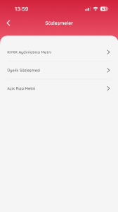Uygulamaya kayıt olurken kabul edilen KVKK ve Üyelik Sözleşmesi detaylarına bu sayfa üzerinden erişilir.