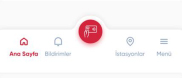 Tab Bar’dan ‘Ana Sayfa, Bildirimler, Ödeme, İstasyonlar ve Menü’ sayfalarına gidilebilir.